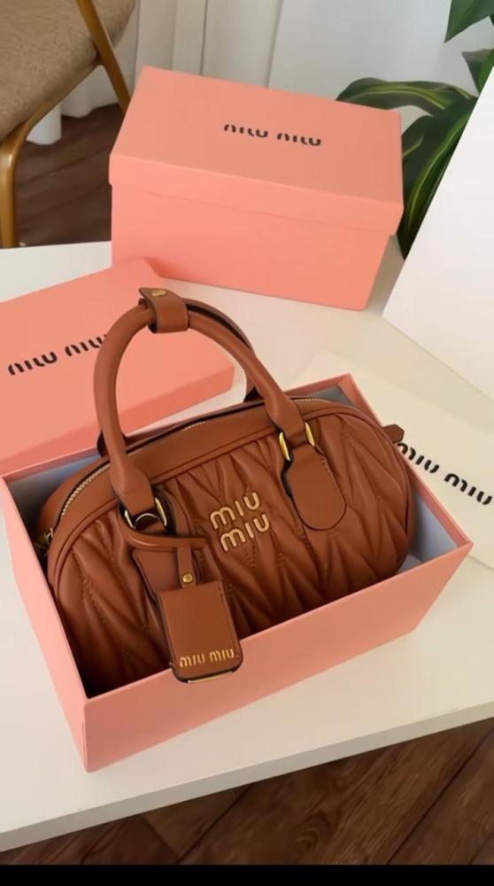 أضيفي لمسة من الدفء والأناقة إلى إطلالتك مع حقيبة اليد من Miu Miu باللون البني الكراميل. تتميز هذه الحقيبة بتصميمها الفريد والجذاب، مما يجعلها الخيار المثالي لكل سيدة تبحث عن التميز.