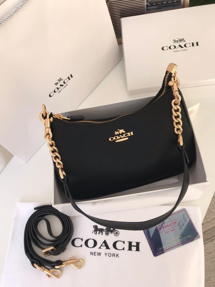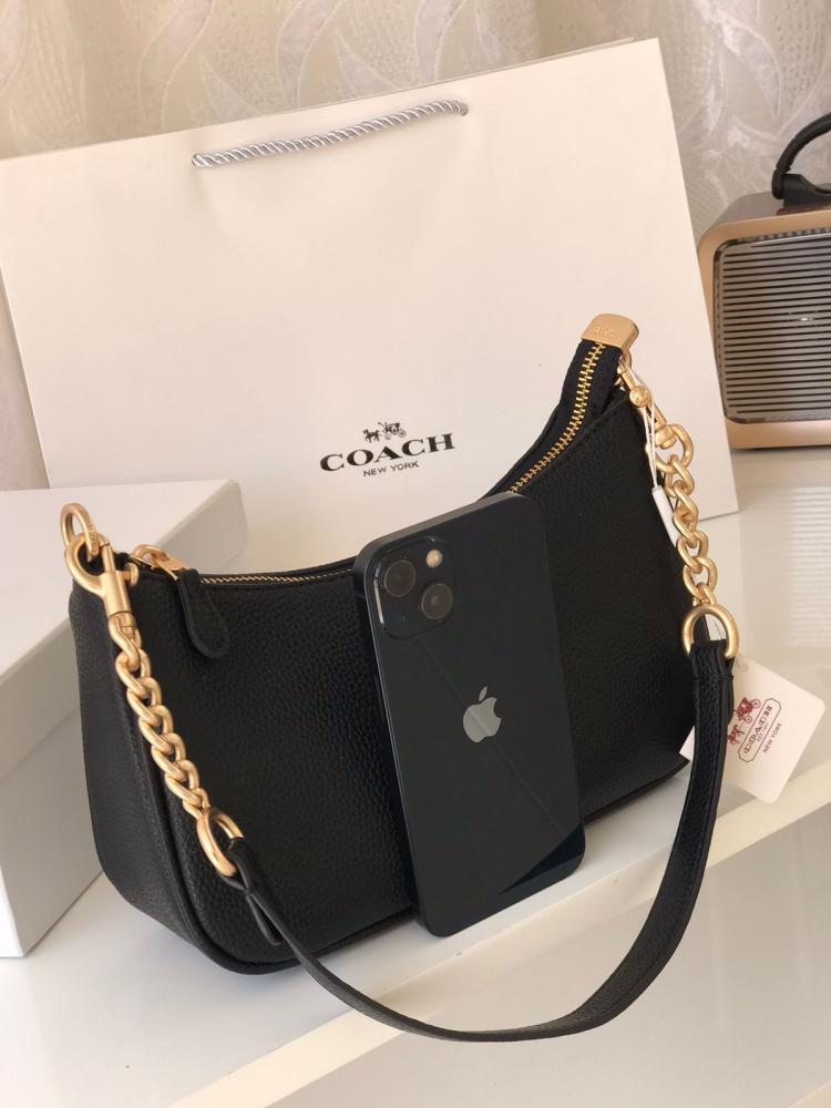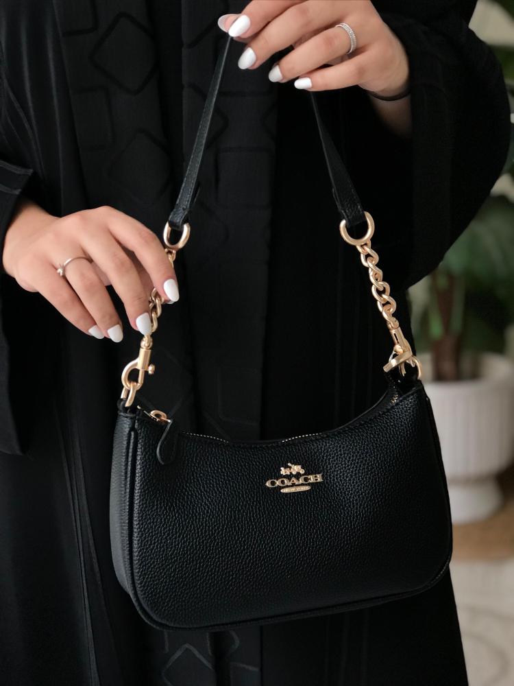حقيبة كوتش مستر باللون الأسود الأنيق، مصنوعة من جلد عالي الجودة مع تصميم عصري. تأتي بتفاصيل ذهبية لامعة وسلسلة أنيقة، مما يعكس الفخامة والرقي. تحتوي على مساحة واسعة لتنظيم المستلزمات اليومية، مما يجعلها مثالية للاستخدام اليومي والمناسبات الخاصة.