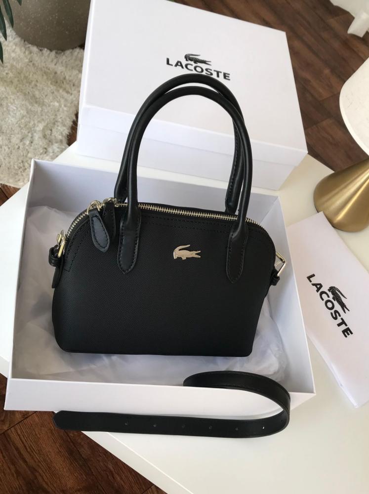 **"حقيبة لاكوست السوداء: رمز الأناقة والفخامة. تصميم أنيق يجمع بين العملية والجاذبية، مثالية لكل مناسبة. اجعلي إطلالتك مميزة مع لمسة لاكوست!"**